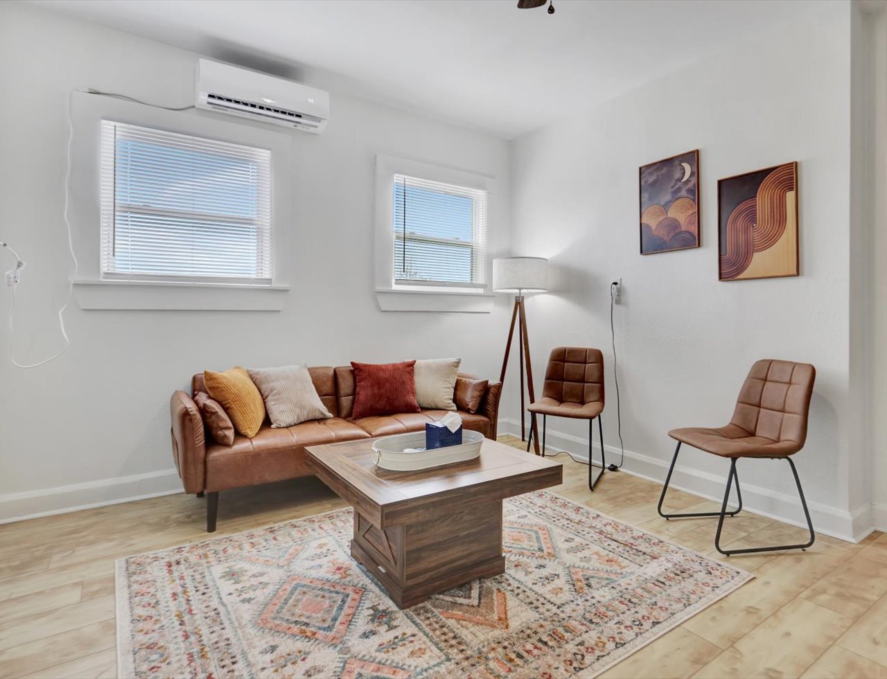 Cozy 1 bed, 1 bath downstairs apartment in downtown Hot Springs. Features a private bedroom with king bed, in-unit laundry, a comfortable living room with queen sleeper sofa, and a fully stocked kitchen. Smart TV & free wifi. On street parking. Convenient location near downtown attractions, dining, and entertainment, perfect for short stays or extended visits.