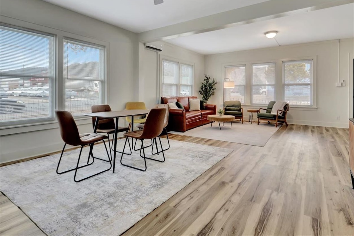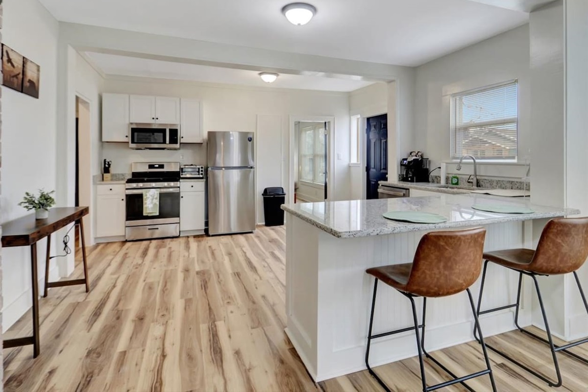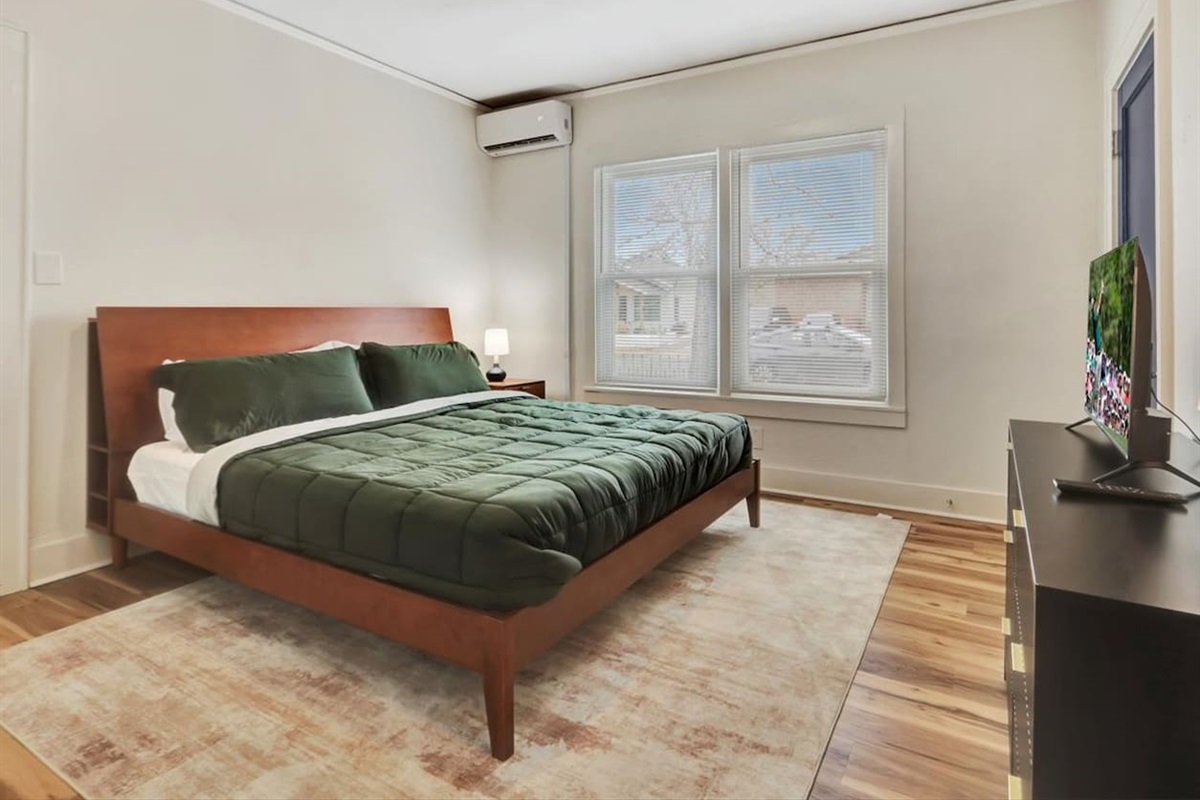 1 Bedroom • 1 Bathroom 1 Bath • Sleeps 2-4Cozy 1 bed, 1 bath downstairs apartment in downtown Hot Springs. Features a private bedroom with king bed, in-unit laundry, a comfortable living room with queen sleeper sofa, and a fully stocked kitchen. Smart TV & free wifi. On street parking. Convenient location near downtown attractions, dining, and entertainment, perfect for short stays or extended visits.